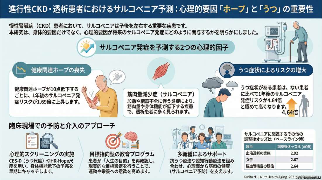 腎代替療法の選択は、患者の生活に大きな影響を与える重要な場面であり、患者と医療者が協力して意思決定を行う「協働意思決定(Shared Decision-Making:SDM)」が推奨されています。しかし、日本におけるCKD(慢性腎臓病)患者のSDMに対する理解や実際の経験、そしてSDMが行われたという認識に影響を与える要因については、これまで十分に明らかにされていませんでした。