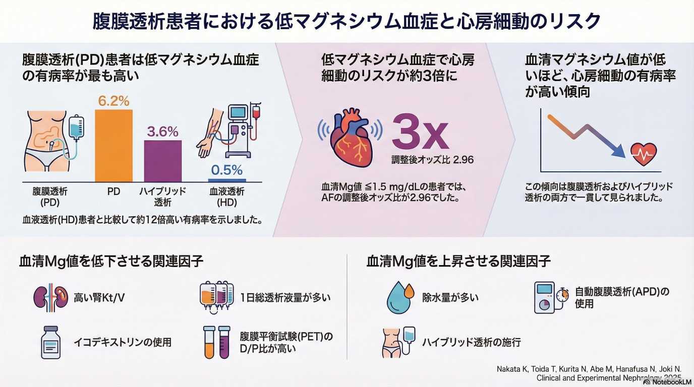 腹膜透析・ハイブリッド透析で遭遇する低マグネシウム血症:有病率と関連因子、心房細動との関連性